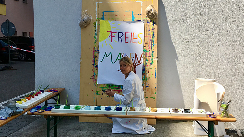 Mit meinem mobilen Mal:Raum kommt das Malatelier auch zu Dir nach Hause - ob einfach zum kreativen Gestalten oder für Einzel-Maltherapiestunden. Ich begleite Deine Veranstaltungen, Seminare, Events oder Geburtstagsfeiern als Kunsttherapeutin mit Achtsamkeit und Feingefühl. Je nach Anlass stelle ich Dir meine mobilen Malwände und verschiedenes Material wie Farben, Pinsel, Papier oder Leinwände, Schälchen etc. zur Verfügung.